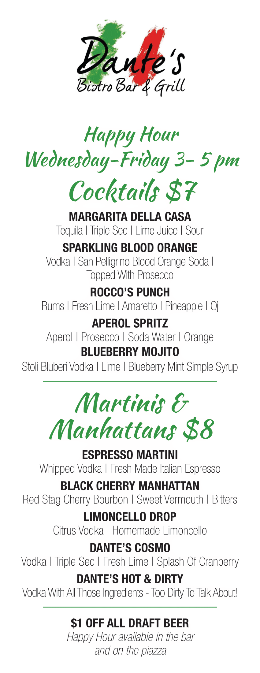 Alongside our regular menu, we feature unique weekly specials crafted with fresh, seasonal ingredients. Check out our Instagram to see what we’re serving this week!